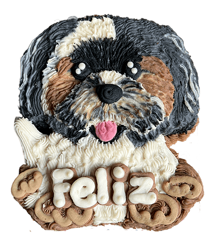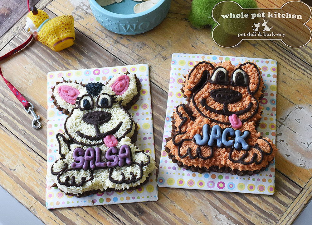We can make a Sensitiveskin formulation of this “mini” version of your dog! Our Sensitiveskin Mini Me cake is made to look like a cartoon version of your pup. It’s still made with the same cake bases Whole Pet Kitchen is know for the past few years! Each cake can have a name placed on it of up to 7 letters.