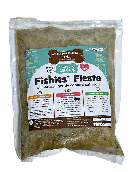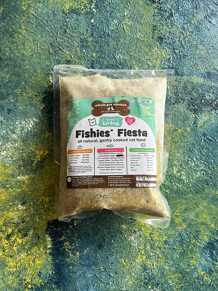 Do your cats love fish? Our fishies fiesta cat food is great for felines who love fish! Although because of our house cat, Nana, we have stayed away from tuna variants as she is allergic to them and found that she can still enjoy fish using sardinella, catfish, milkfish and salmon. Despite its aromatic name, our fishies fiesta doesn’t make your cats poop and pee smell bad, in fact, it does the opposite.