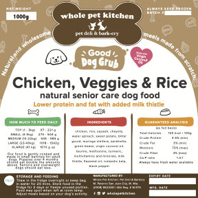 Chicken, Veggies & Rice, Good Dog Grub (low protein, low fat) dog food 1kg