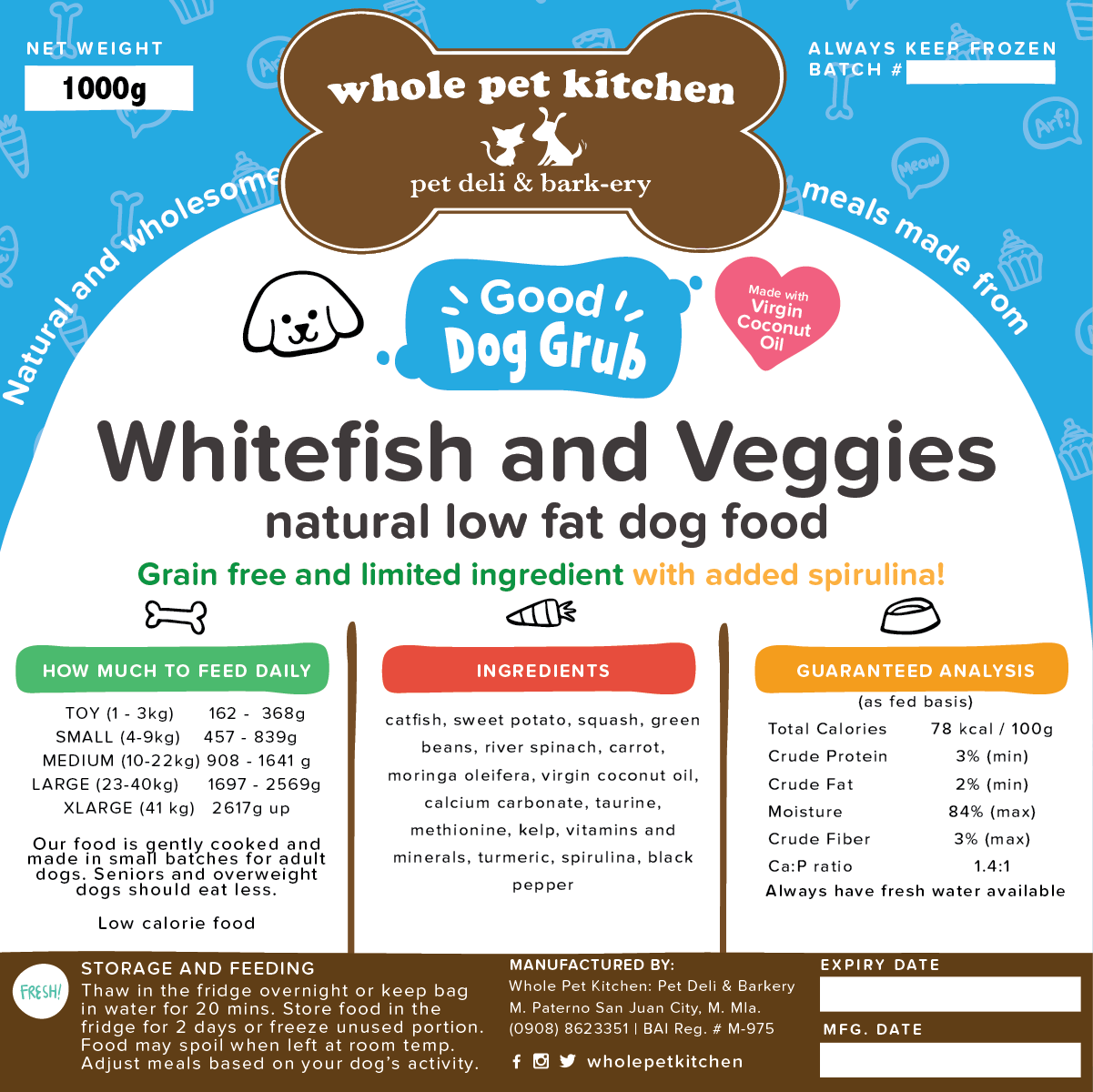 *Grainfree* Whitefish & Veggies Simple Meal, limited ingredient Good Dog Grub (grain & gluten-free) dog food 1kg